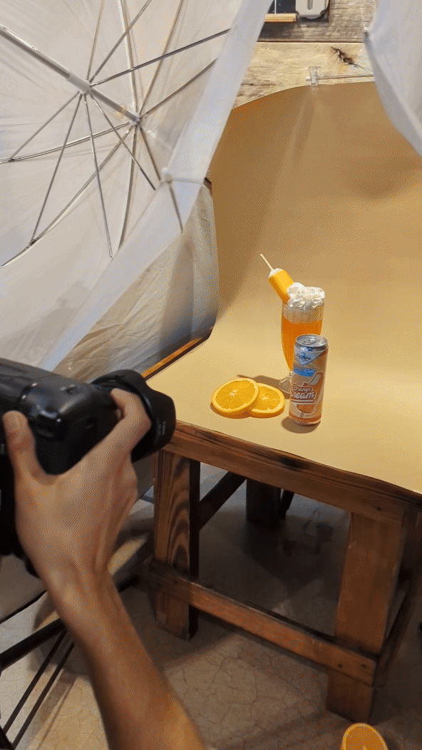 Initially, we planned for more elaborate settings, but we decided to move forward with a straightforward colored backdrop to keep things simple and focus on the product itself. This change allowed the vibrant colors of the RetroChill Vodka and Soda cans to stand out more effectively.